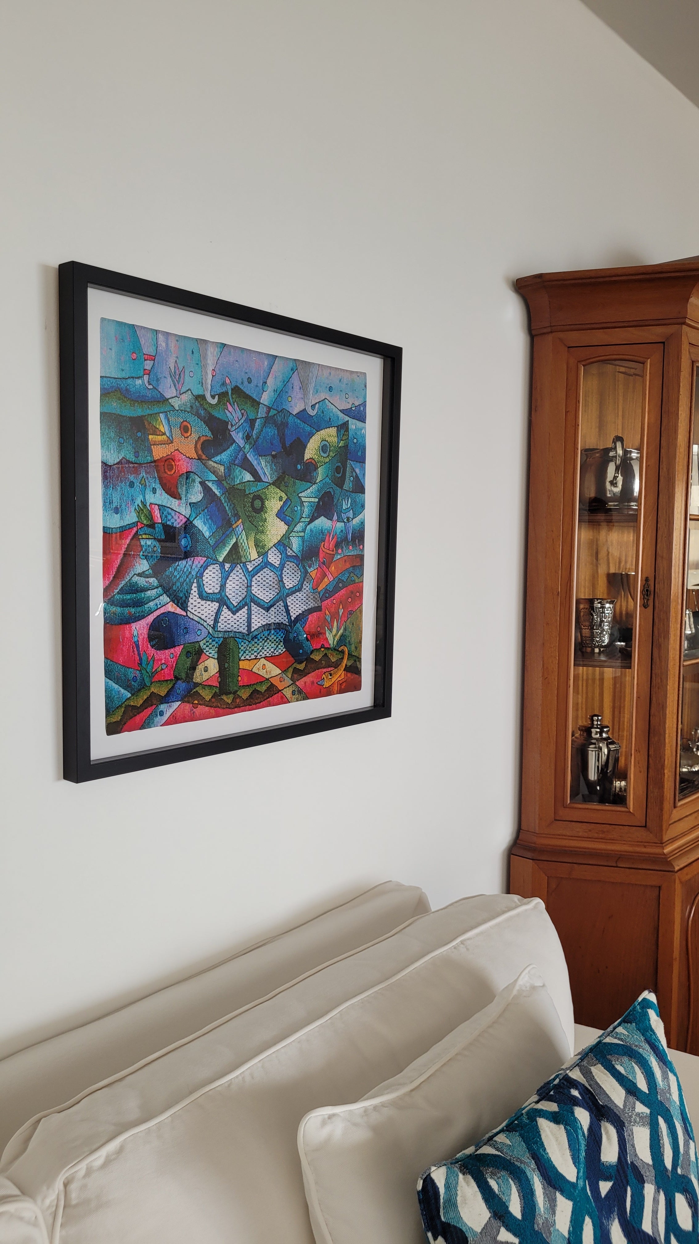 Impresión artística de la obra "Fruto Abundante del Mar III" de Máximo Laura, impreso en papel artístico de 160 gramos.